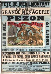 Vers 1885, Baptiste Pezon s’installa à Montreuil sous Bois, au 6 de la rue Gutenberg [1]. Il y exploita sa ménagerie sous l’enseigne « Grande ménagerie lozérienne » qui en 1890 devint « Grand établissement zoologique français ». Il se caractérisa par son dressage en douceur. « Sa méthode était à l’opposé de la manière théâtrale de son concurrent Bidel. Jamais de coup de feu, peu de coups de pistolet ou de fusées,