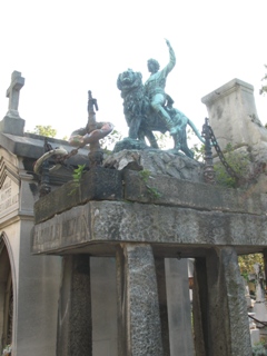 Il fut inhumé au Père Lachaise, dans la 86ème division, dans le caveau qu’il avait acheté en 1877 à la mort de son jeune fils Emile. Ce fameux tombeau que tous les habitués du Père Lachaise connaissent, et sur lequel il fut statufié chevauchant son lion Brutus par Prosper Lecourtier.