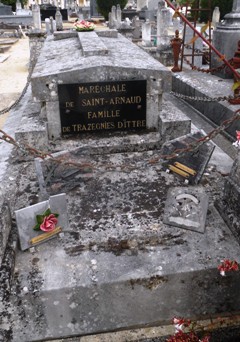 Sa seconde épouse, Louise-Anne-Marie de Trazégnies (1816-1905), repose au cimetière d’Arcachon (33).