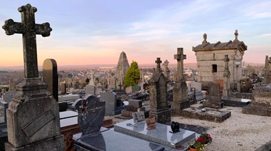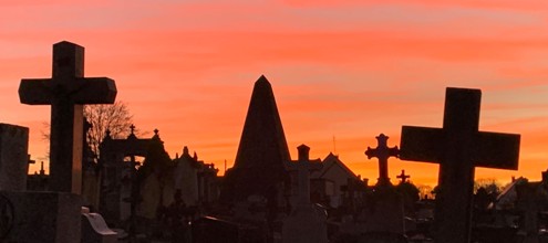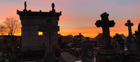 Vire possède plusieurs cimetières : celui de Saint-Benoît est le cimetière patrimonial de la ville. Visite entre chiens et loups, avec un très beau coucher de soleil.