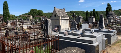 Alternance de caveaux modernes, de chapelles anciennes, d’enclos rouillés, le cimetière de Souillac à des airs fatigués.