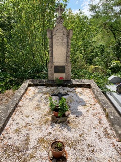 Ici repose discrètement le contre-amiral Gabriel AUPHAN (1894-1982). Combattant lors de la Première Guerre mondiale en Méditerranée, nommé Gouverneur militaire de la Polynésie de 1938 à 1939, il fut fut secrétaire d’État à la Marine du gouvernement de Vichy d’avril à novembre 1942. Opposé à la politique de collaboration, il se rangea à la décision du sabordage de la flotte après l’invasion par l’Allemagne de la zone libre. Après avoir vainement incité le maréchal Pétain à quitter la métropole, il donna sa démission en novembre 1942. Il fut chargé en août 1944, par le maréchal Pétain, d’une démarche auprès du général de Gaulle afin qu’une passation de pouvoir soit officiellement menée. Cette mission fut sans suite car le général de Gaulle refusa de le recevoir et le fit arrêter. Jugé en 1946 par la Haute Cour de justice qui le condamna aux travaux forcés, à l’ indignité nationale à vie ainsi qu’à la confiscation de ses biens, sa peine fut substantiellement adoucie quelques années après.