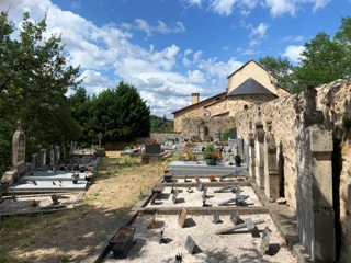 Je dois dire que des milliers de cimetières que j’ai visités, celui-ci fut le moins accessible de tous ! Voulant m’épargner toute la montée à pieds, j’ai voulu m’en rapprocher en voiture. Outre la difficulté à trouver la voie qui menait à proximité, je me suis retrouvé finalement sur un chemin non carrossable où je me suis embourbé, et il m’a fallu du temps pour me tirer d’affaire ! Bref : soyez vigilant si vous désirez visiter le lieu autrement que par une ascension pédestre.