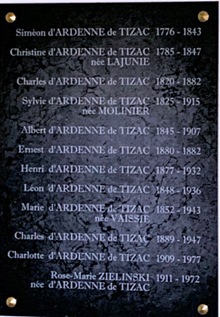 d’ARDENNE de TIZAC, châtelains de la commune. Y repose Jean VIOLLIS (Jean-Henri d’Ardenne de Tizac : 1877-1932), homme de lettres qui fut conservateur du Musée Cernuschi (1905) et critique d’art, spécialiste des arts chinois. Il fut l’époux de l’écrivaine et journaliste Andrée Viollis [2]. En 1907, il voyagea avec elle en Tunisie, ce qui lui inspira son roman Délices de Fez.