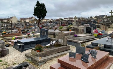 Pas de grande pointure ici, même pas de second couteaux, mais quelques tombes liées à des événements anecdotiques assez intéressants, et un patrimoine funéraire semblable à celui de toutes les communes qui raconte l’histoire de la ville.