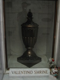 (1895-1926), qui imposa son charme androgyne dans les films qui firent son succès : le Sheik, Les Quatre Cavaliers de l’Apocalypse ou le fils du Sheik. Il mourut à 31 ans d’une septicémie : ses obsèques, à New York puis en Californie, donnèrent lieu à des scènes d’hystéries collectives. Il fut placé dans une crypte provisoire de ce cimetière...où il repose toujours ! Effectivement, les projets de mausolée grandiose ne virent pas le jour...le temps passa et l’hystérie se calma. Il conserve néanmoins beaucoup de fans, qui viennent régulièrement en pèlerinage près de sa sépulture.
