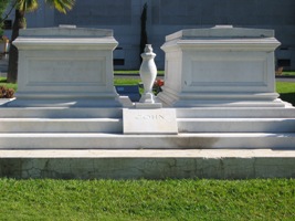 il fut déplacé par sa veuve dans ce cimetière, où il repose sous un tombeau caractéristique, composé d’un bassin rectangulaire et d’une colonnade antique. Il y fut rejoint par son fils, Douglas FAIRBANKS Jr (1909-2000), qui fut un brillant officier durant la guerre et un acteur de renom, même si sa notoriété n’atteint pas celle de son père (Sinbad le Marin, le Prisonnier de Zenda). Il fut l’époux de l’actrice Joan Crawford.