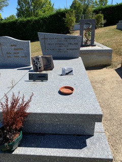 C’est ici qu’est censé reposer le Compagnon de la Libération Jean ASTIER de VILLATTE (1900-1985). Administrateur de sociétés civiles, il fut mobilisé en 1939 et choisit de rallier les forces françaises libres. En tant qu’aviateur, il prit part aux opérations aériennes de la France libre en Afrique du Nord et de l’est et au Moyen-Orient, puis il occupa des fonctions de commandement au sein des forces aériennes françaises libres. Après-guerre, il retrouva sa profession d’ingénieur en Afrique puis en France. Le cimetière n’est pas grand : je l’ai parcouru plusieurs fois tombes après tombes mais n’ai pas réussi à trouver sa dernière demeure.