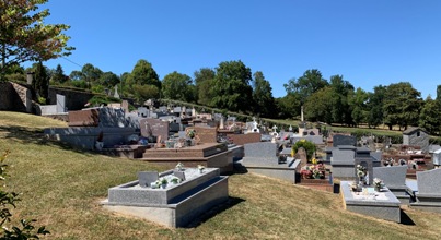 Petit cimetière rural en pente dominant la campagne environnante, le cimetière de Chavagnac se visite vite