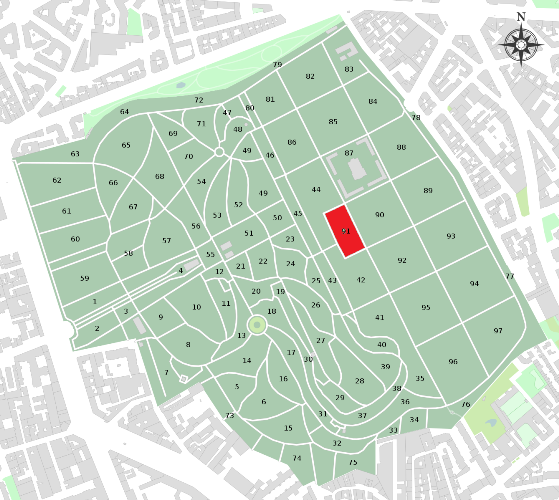 La 91ème division se voit de l’avenue transversale n°2 qui la borde. A l’intérieur en revanche, on ne la distingue pas vraiment de la 44e et de la 42e divisions dans lesquelles elle est enclavée, sinon par une allée un peu plus large que les autres.