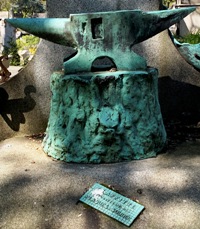 !) fut l’inventeur des plaques à souder. Je suis toujours amusé quand je suis dans le secteur de voir comment sa tombe attire le chaland, tout heureux d’avoir trouvé une sommité ! Il est vrai qu’outre l’enclume, la tombe est ornée d’un médaillon par Pierre Vaudrey entouré d’une couronne de pavots, d’un livre ouvert, d’une vasque et d’un modèle... de plaque à souder !