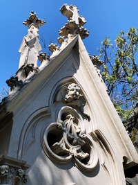 – La tombe Mittler possédait un buste en terre-cuite disparu. Il en est de même pour la tombe Moine qui était surmonté d’une femme ailée par Henry Edouard Lombard.