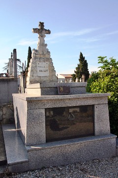 Secondino Fiorio, né en Italie en 1879, émigra avec toute sa famille en France à l’âge de 3 ans dans la région grenobloise. Maçon, il fréquenta la briqueterie de Limoux, exploitée par M. Guiraud, dont il épousa la fille. Naturalisé français, il prit la succession de son beau-père. En 1919, il créa la briqueterie et tuilerie du Languedoc, et sa petite entreprise excella rapidement dans la construction de grottes artificielles, ou l’imitation en ciment de troncs d’arbres et de branchages, une technique qui très populaire au début du XXe siècle que l’on retrouve d’ailleurs dans pas mal de cimetières. Les affaires marchèrent bien : il construisit des usines de chapeaux à Espéraza, l’hôpital psychiatrique de Limoux ou encore le théâtre municipal de Carcassonne. Il repose dans un massif tombeau familial à l’italienne orné d’un double médaillon en bas-relief réalisé par Paul Silvestre.