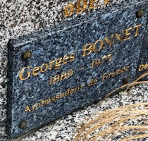 La carrière politique de Georges Bonnet incarna la dérive d’une partie des pacifistes. Ce pacifisme fut en outre la seule colonne vertébrale idéologique de cet homme brillant mais opportuniste. Maire de Brantôme de 1955 à 196, il repose ici [1]avec son épouse et son fils, Alain-Paul BONNET (1934-2017), qui fut maire de Brantôme de 1965 à 1989 puis de 1995 à 2001 et député radical de gauche de Dordogne de 1973 à 1993.