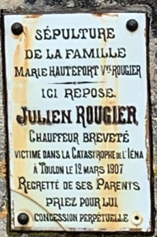 – y repose l’une des victimes de l’explosion, en 1907, du cuirassier Iéna à Toulon.