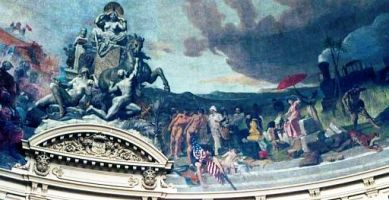 Aux côtés de quatre autres peintres, Luminais a participé à la réalisation de la fresque monumentale de plus de 1 500 m2 ornant la coupole de la Bourse de commerce de Paris, commencée en 1886 et inaugurée en 1889, représentant l’histoire du commerce entre les continents18. Il y a représenté l’Amérique dans l’esprit de l’époque avec une scène groupant des Indiens, des esclaves, des ouvriers, des cow-boys, et où fait irruption une locomotive à vapeur, symbole de modernité.