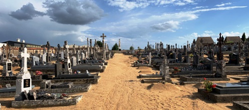 Au sein du parc naturel régional de la Brenne, aux confins du Berry et du Poitou, le cimetière de Douadic offre un sol sablonneux.