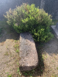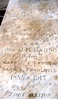 Pour débusquer celui que je cherchais, je me suis d’abord rendu -en vain- au cimetière de Camors. Rien de spécial ne m’y attendait, sinon la tombe d’un curé... en breton.