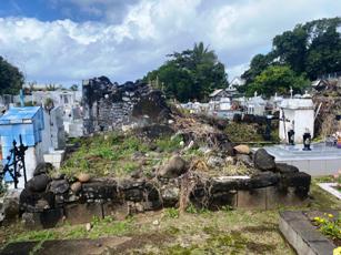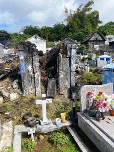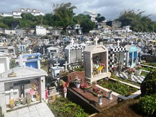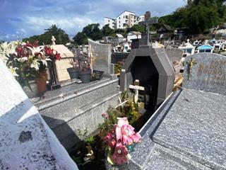 Si la partie gauche de ce cimetière est occupée par des tombeaux de très grande chapelles, la particularité de ce lieu est de présenter des centaines de tombes ou les croix habituelles ont été remplacées par des niches abritant crucifix, effigies ou fleurs. C’est le seul de l’île a présenter une telle concentration. On retrouve aussi, en faible quantité, des tombes comme en Guadeloupe, constituées de damiers de carrelage noir et blanc. Le cimetière musulman est dans la même enceinte mais séparée d’un mur.