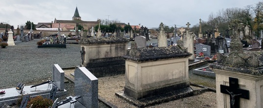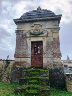Au fond du cimetière, une grande chapelle est intrigante car son entrée tourne le dos à la nécropole : il me fallut contourner l’enclos (dans un champs bien boueux !) pour voir l’identité de son propriétaire, Henri De Brendenbeck de Châteaubriant (1832-1884). Il était l’oncle du prix Goncourt Alphonse de Châteaubriant, qui dans les années 40 fut le chantre de la collaboration. Condamné à mort par contumace, il s’enfuit et mourut en Autriche (il repose au cimetière de Kitzbühel). L’oncle Henri fut quant à lui maire du village, où il était propriétaire du château de la Motte.