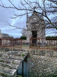 Sur un tertre, une chapelle massive attire l’œil : il s’agit de celle d’une famille de notables locaux (Faribaud).