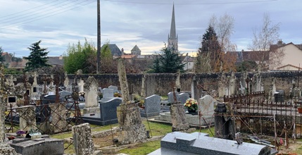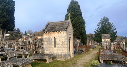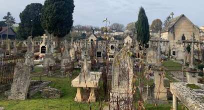 Le cimetière de Saint-Savin a conservé une bonne partie de ses anciens tombeaux, créant un panorama de vieilles dalles, de tombeaux à chevalet (Poitou oblige !), de dalles et d’enclos rouillés ; avec comme horizon la vieille abbaye. On ne s’en plaindra pas.