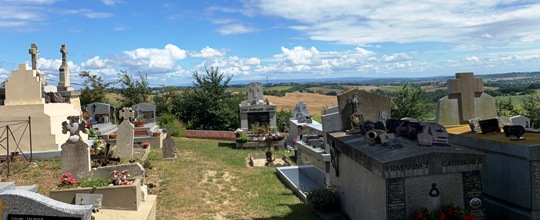 Face à l’église, dans un cimetière familial distinct du cimetière paroissial, vous attendent les célébrités du lieu.