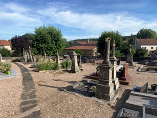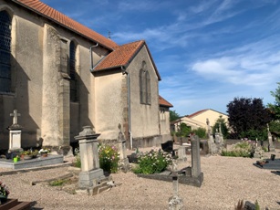 Le petit cimetière d’Estrennes est accolé à l’église du village.