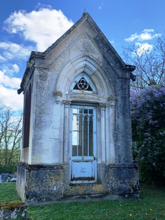 Un peu à l’écart dans le cimetière, une chapelle imposante - mais délabrée - domine : c’est celle des MARGAINE, dans laquelle reposent