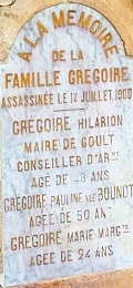 Une tombe du cimetière relate un épisode dramatique du village : le 14 juillet 1900, Hilarion Grégoire, 48 ans, agriculteur, maire et conseiller régional, son épouse Pauline, âgée de 50 ans et leur fille, Marie Margarite, âgée de 24 ans, furent assassiné au couteau par Jean-Baptiste Allemand, un célibataire marginal du village éconduit par la dite Marie. Il blessa également six autres personnes. Il mourut peu après, blessé par le couteau lors de sa capture.