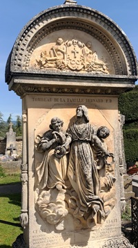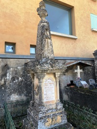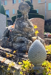 Il y a mille choses à voir dans le cimetière de Goult. Comme c’est souvent le cas dans ce type de région, aux vieilles familles provençales ont succédé des notables du monde des affaires, de la politique ou des sphères artistiques, qui finissent bien souvent au cimetière, parfois dans une grande discrétion. Leur aisance financière - mais aussi certaines sensibilités artistiques - autorisent souvent des tombeaux originaux, pas toujours très imposants, mais qui sortent de la banalité funéraire actuelle en mettant en avant la personnalité du défunt.