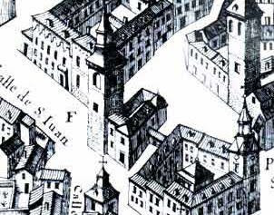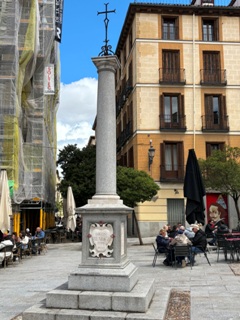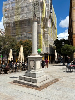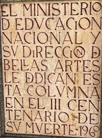 L’église médiévale San Juan Bautista fut démolie en 1810 sous le règne de Joseph Ier, qui voulait ouvrir une perspective devant le Palais royal. Ne demeure que cette colonne, qui lui sert de cénotaphe. Une inscription en ce sens fut ajoutée en 1960, centenaire de sa mort, à la demande du ministère de l’Education national et de la direction des Beaux-Arts.