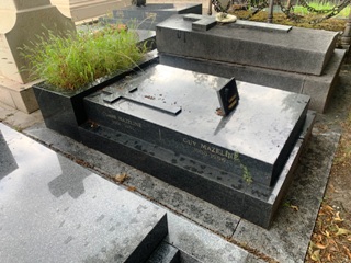 Parmi ces taphophiles : Jean-Pierre Ariey-Jouglard. En 2014, ce dernier et France Raimbault firent paraître un dictionnaire bien plus fourni sur le cimetière, un premier ouvrage vraiment sérieux et documenté. Ajout appréciable : des petites cartes localisant l’ensemble des sépultures recensées, avec malgré tout pas mal d’erreurs de placement (mais je suis bien placé pour savoir à quel point ce travail est difficile).