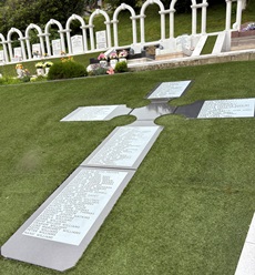 Le monument aux victimes de la catastrophe d’Aberfan, les 144 enfants et adultes, est situé en hauteur, dans la partie du cimetière de Bryntaf.