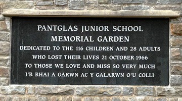 Un jardin commémoratif se dresse sur le site de l’ancienne école primaire de Pantglas. On y trouve des arbres commémoratifs et des bancs dédiés aux victimes.
