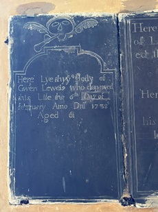 Quelques dalles funéraires se trouvent sur les murs, dont une ornée d’un crâne datée de 1758.