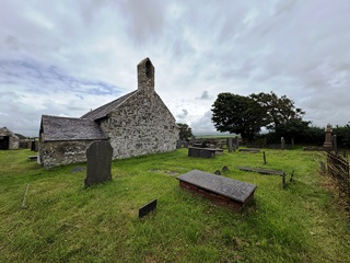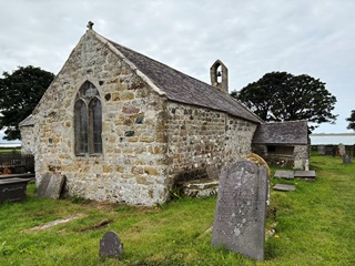 Le minuscule cimetière attenant atteste du faible nombre de patronyme gallois : presque toutes les tombes portent le nom de Jones ! La vue porte sur la mer très proche.