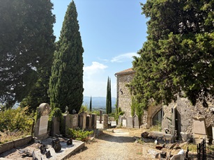 C’est contre elle qu’est adossé le cimetière du village, pittoresque et ombragé de cyprès.