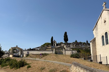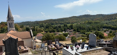 Derrière l’église Saint-Ange, tout en pente, se dresse le cimetière de Peyrins.