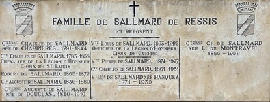 Adossé au mur sud de l’église se trouve le tombeau de la famille Sallmard dans lequel est enseveli Charles de SALLMARD (1783-1858), qui combattit dans les armées napoléoniennes.