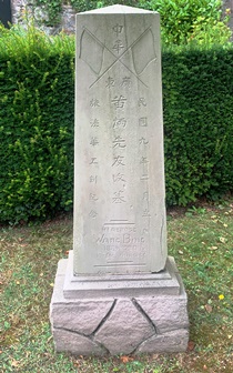Sur la partie française du cimetière un monument insolite surprend le visiteur. Il s’agit de la stèle funéraire d’un soldat (indo)chinois au nom de Wang Bing, en poste à Munster, au Camp Castelnau, entre 1919 et 1920. Il était chargé avec ses camarades d’exhumer les corps des soldats dispersés sur les champs de batailles et de remettre en état les lieux où les armées ennemies s’étaient affrontées. Il mourut suite à l’explosion d’un obus.