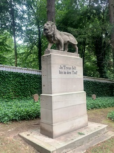Ce lion a été érigé en 1916 par les troupes bavaroises en cantonnement dans les alentours de la ville. Elles ont participé aux violents combats qui se sont déroulés dans la vallée de Munster pendant la Première Guerre mondiale et tout particulièrement durant l’année 1915, au cours de laquelle les villages situés derrière Munster, à l’exception de Mittlach, ont été presque entièrement détruits. Le texte gravé sur le monument signifie « Ferme dans la fidélité jusqu’à la mort ».