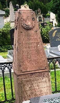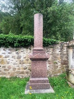 La tombe en grès rose de Johann Isenarm, un ancien juge de paix mort en 1808, est la plus vieille tombe conservée du cimetière.