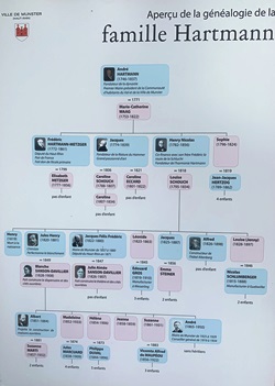 - Frédéric Hartmann (1822-1880) : petit-fils d’André, il fut maire de Munster de 1857 à 1880. Grand amateur d’art, il se lia d’amitié avec les peintres Théodore Rousseau et Jean-François Millet, dont il possédait de nombreux tableaux. Il fut un éphémère député en 1871 : élu représentant du Haut-Rhin le 8 février 1871, il démissionna le 1er mars pour protester contre l’annexion de l’Alsace-Moselle.