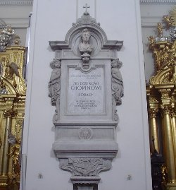 Craignant d’être inhumé vivant, il avait supplié que son corps et son cœur soient séparés : le premier repose au Père-Lachaise, sous une statue d’Euterpe au luth brisé, œuvre de Clesinger (également auteur du médaillon qui orne sa tombe le représentant de profil, d’après un moulage réalisé juste après sa mort). Le second fut ramené à Varsovie par sa soeur : il est enchassé dans un carditaphe qui se trouve sur un pilier de la cathédrale Sainte Croix de la ville.
