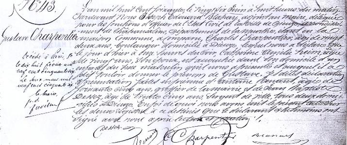 Acte de naissance de Gustave Charpentier - Dieuze.
