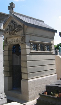 La chapelle Saint-Sa« ns a été vandalisée : la porte fracturée, les deux bougeoirs et la croix de l’autel (tous les trois en marbre,) deux vases et une jardinière en porcelaine volés. Les plaques nominatives (elles aussi en marbre, déformées (bombées) par le vent et la pluie qui entrent par une porte désormais ouverte ) vissées sur les murs latéraux tombent en poussière et bientôt en miettes !...........Et sans rire, il y a, à l’entrée du cimetière (entrée par le d Edgar-Quinet) un bâtiment dit de "LA CONSERVATION", où les ricanements sont de mise s’il vous venait la prétentieuse idée de signaler cet état de fait !
