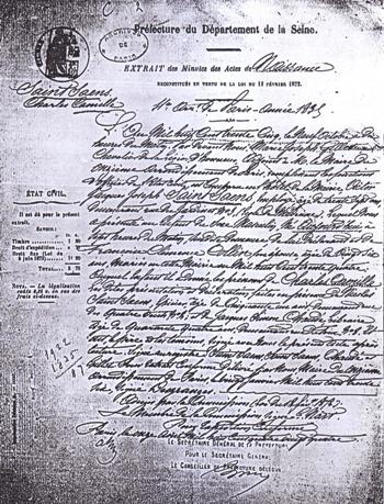 reconstitution de l’acte de naissance de Camille Saint-Saë ns - Paris.