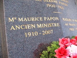 Député UDR du Cher en 1968, maire de Saint-Amand-Montrond de 1971 à 1983, il fut ministre du Budget de 1978 à 1981 sous Raymond Barre. A ce poste, il commit l’erreur d’ordonner un contrôle fiscal au Canard Enchaîné. La riposte ne se fit pas attendre : le Canard publia des documents prouvant l’implication de Papon dans la déportation des Juifs en 1981. Inculpé en 1983, un bras de fer de 17 ans s’engagea jusqu’à l’ouverture du procès qui secoua la France après celui de Nuremberg. Clamant son innocence et se réclamant de la Résistance, il fut condamné en 1999 à 10 ans de prison pour ’complicité de crime contre l’humanité’. En 2002, il quitta la prison de Fresnes pour finir sa peine à domicile, à la colère des anciens déportés et résistants. Il mourut quelques jours après une opération cardiaque.