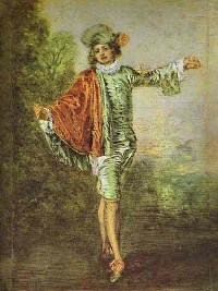 notamment de Rubens, et des Vénitiens. Mais l’artiste y ajoute une certaine étrangeté par son goût des rendus vaporeux, la sensualité de sa palette et ses figures énigmatiques. Il fut le peintre des réceptions mondaines de plein air, les fameuses « fêtes galantes », dont le chef-d’œuvre emblématique est Le Pèlerinage à l’île de Cythère, toile mélancolique et mystérieuse. Parmi ses autres sujets de prédilection figurent également les clowns (Pierrot) et les personnages de la commedia dell’arte.